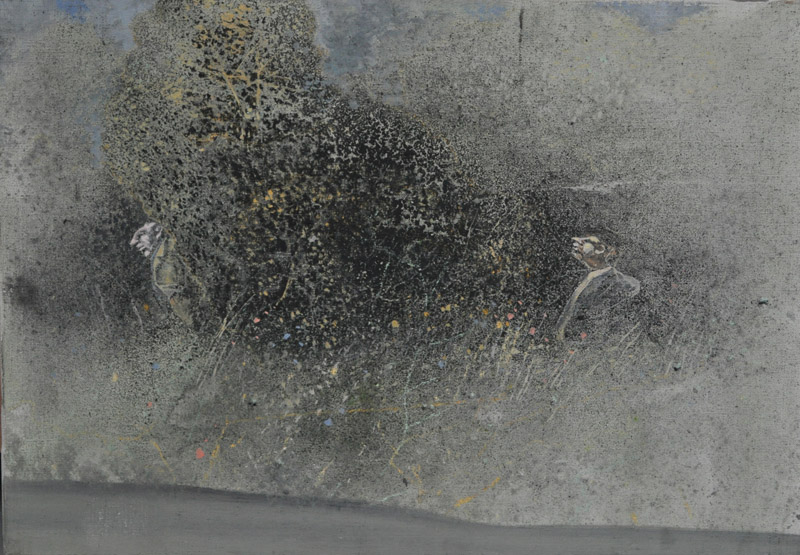 BANCHIERI GIUSEPPE In giardino, 1981 olio su tela cm. 35x50 firma e data sul retro