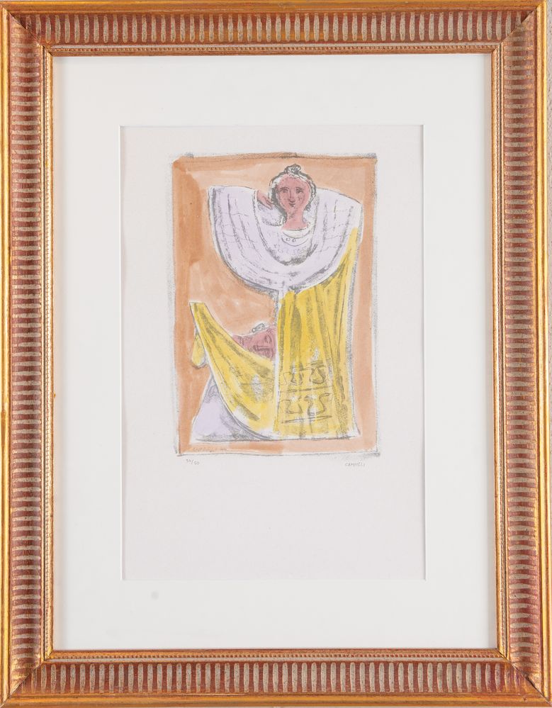 MASSIMO CAMPIGLI (Berlino 1895 - Saint Tropez 1971) "Senza titolo". Litografia a colori su carta. Lastra: cm 25x17; foglio: cm 50x37. Opera firmata in basso a destra Campigli. Reca numeri di tiratura in basso a sinistra 20/50.
