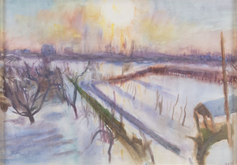 Lotto 176 | ILARIO ROSSI (Bologna 1911 - 1994) "Nevicata". Acquerello su carta. Cm 42x60....