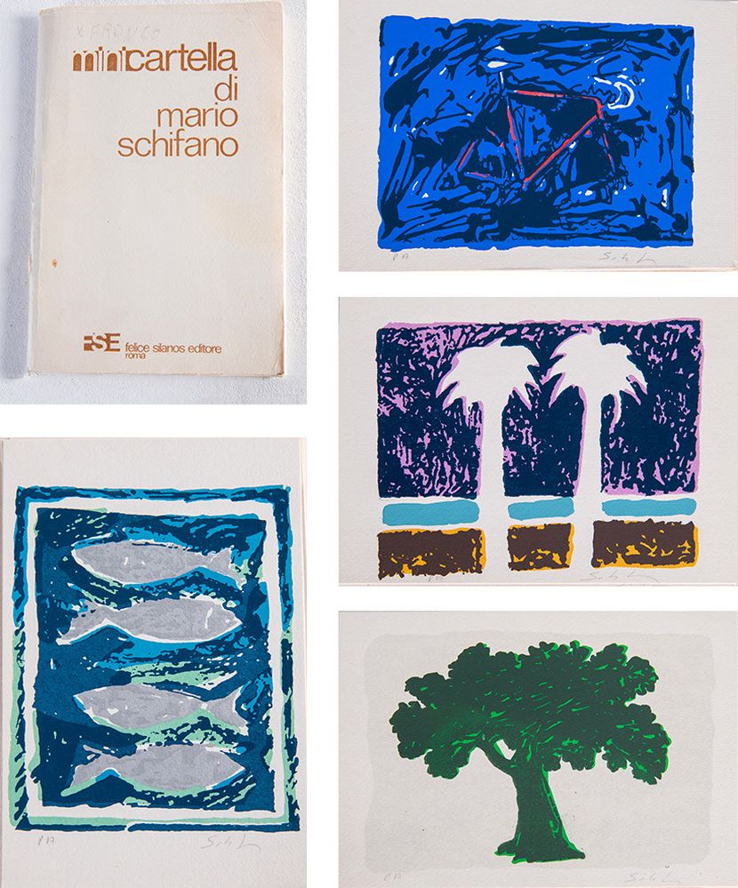 MARIO SCHIFANO (Homs 1934 - Roma 1998) Cartella composta da quattro...