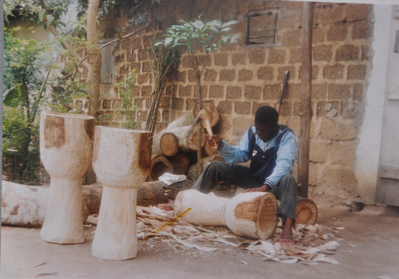 KOKOROKO KUDZOVI Le sculpteur: le debut de la fabrication du tam tam, 1999...