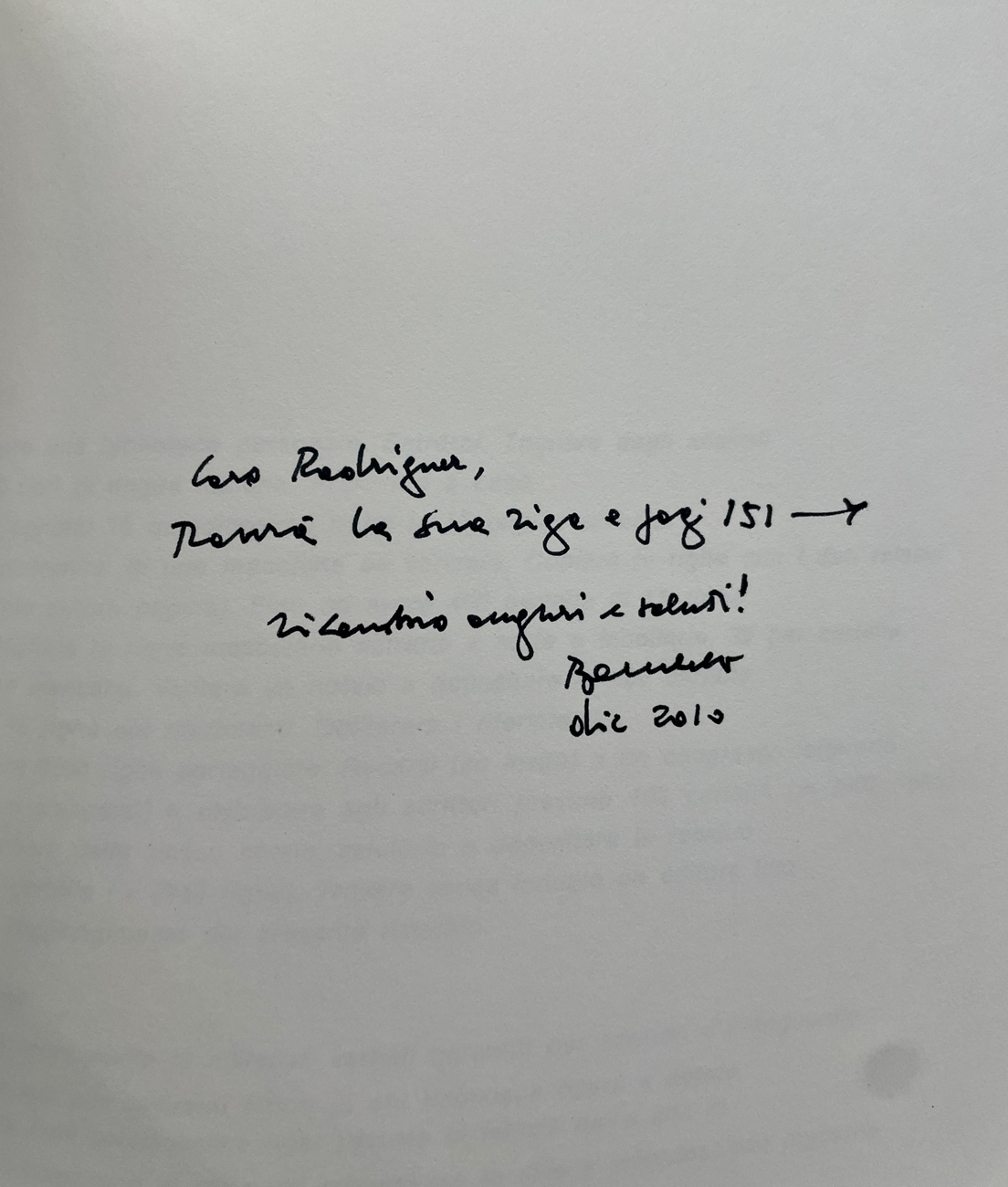 Reca firma, datazione (Dic. 2010) e dedica dell'Artista all'interno