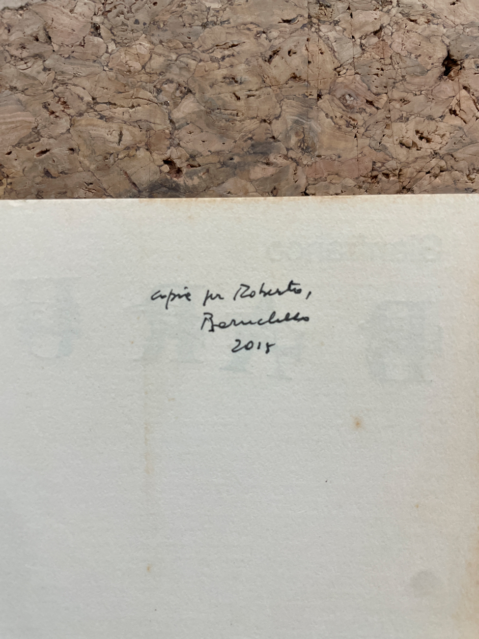 Reca firma, datazione (2015) e dedica dell'Artista all'interno