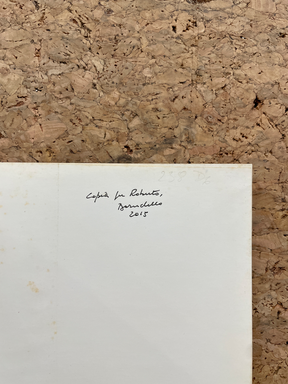 Reca firma, datazione (2015) e dedica dell'Artista all'interno