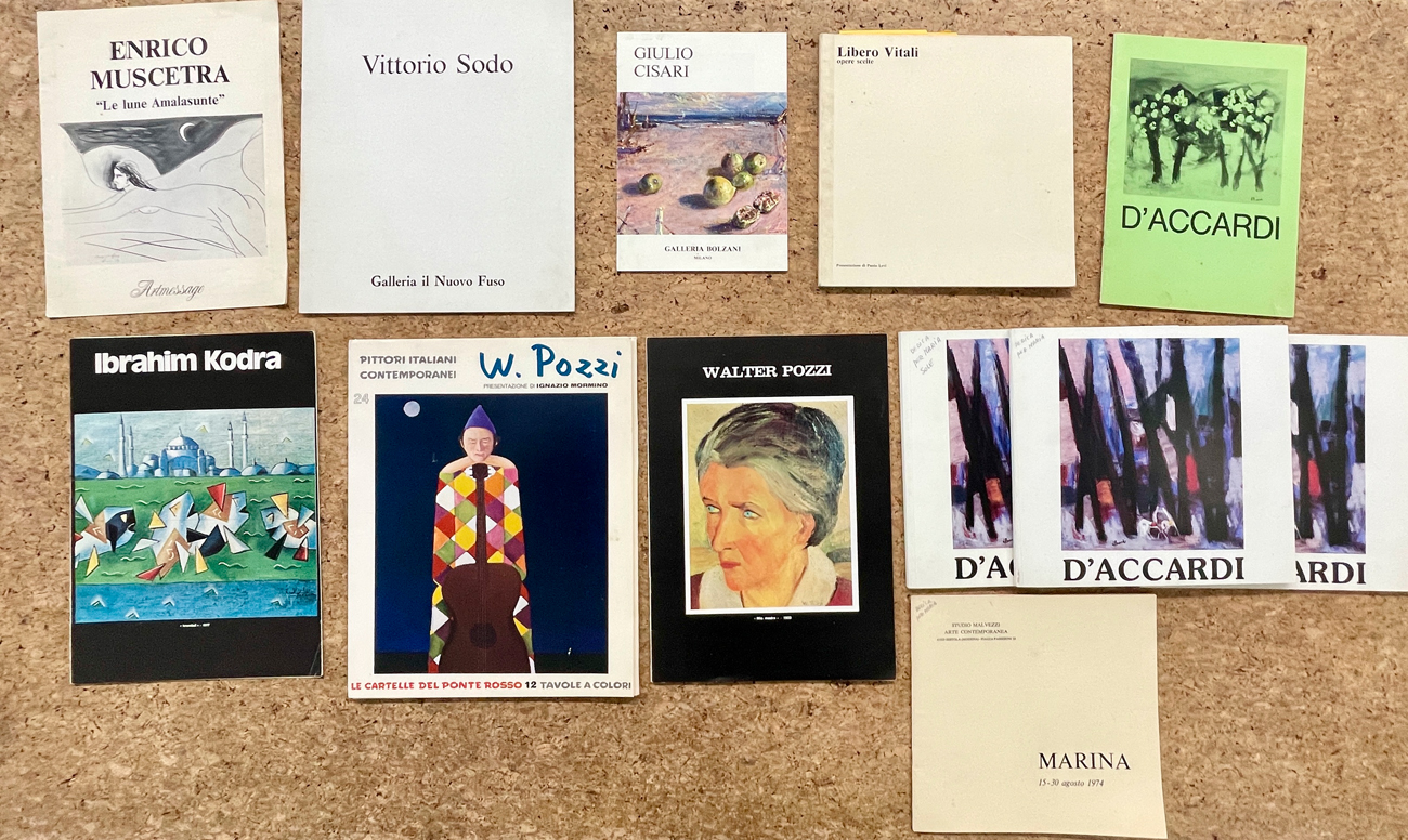 Si allegano 5 ulteriori cataloghi relativi agli artisti Walter Pozzi (2), Ibrahim Kodra, Enrico Muscetra e Giulio Cisari