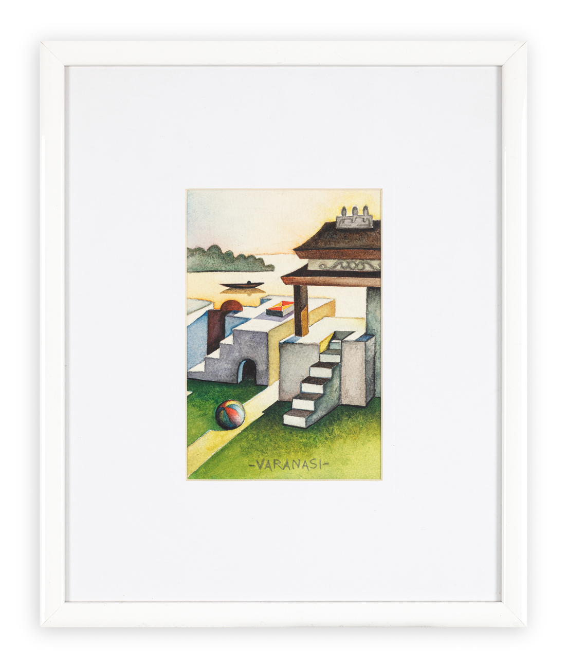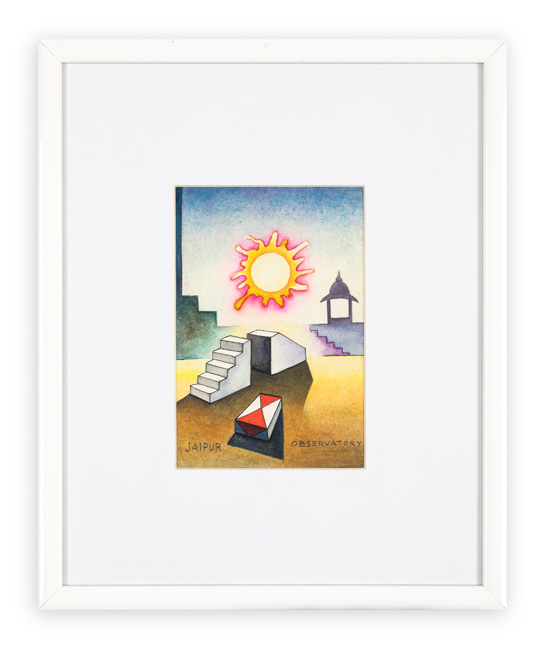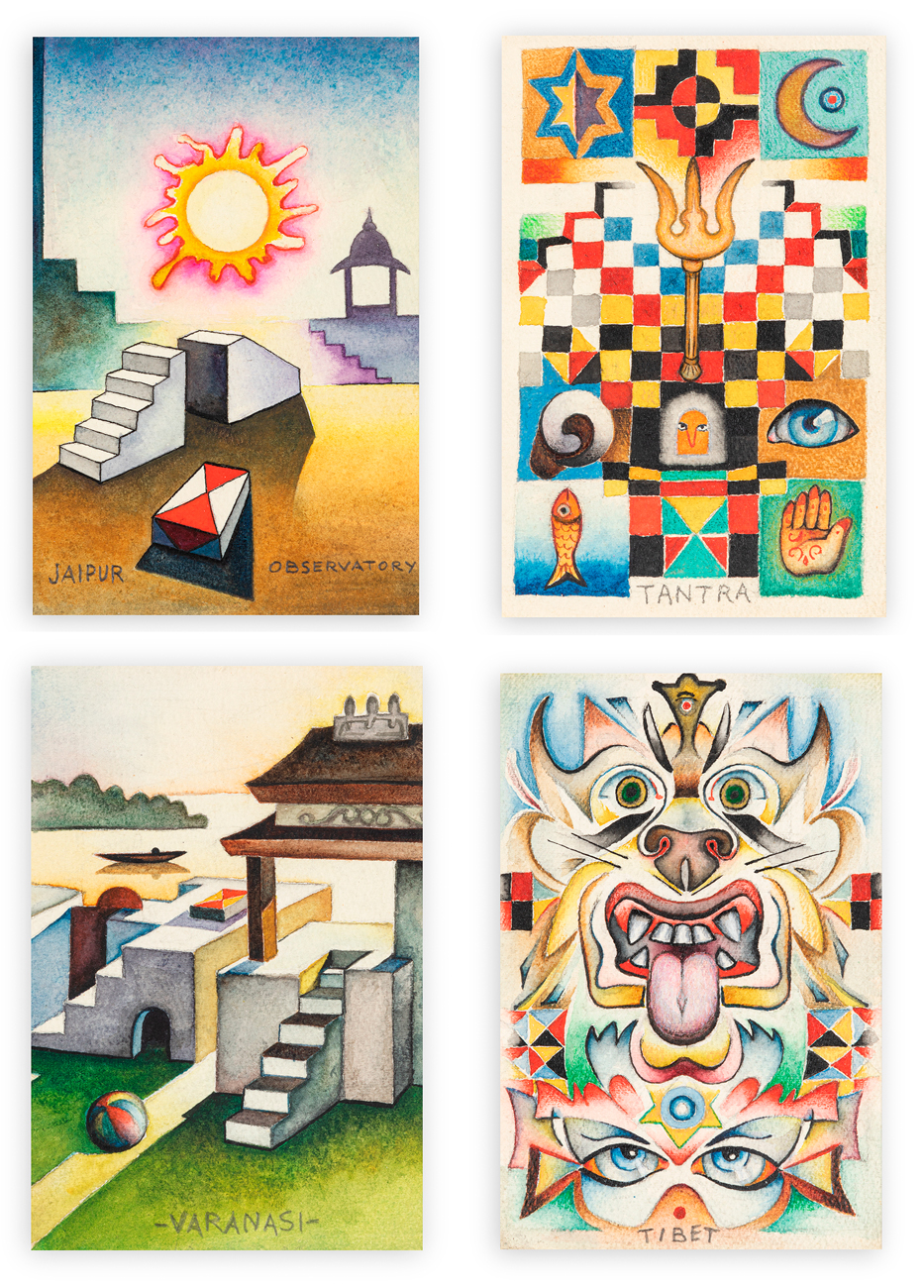 Lotto unico di 4 tecniche miste su carta recanti titoli (Tibet, Varanasi, Tanta e Jaipur Observatory) al fronte e firma dell'Artista al retro