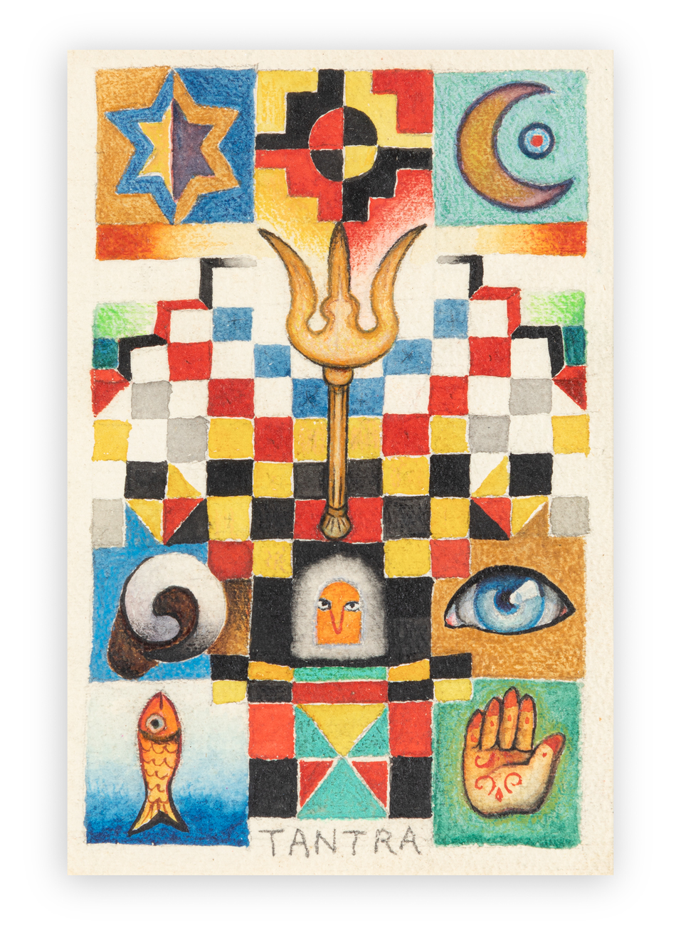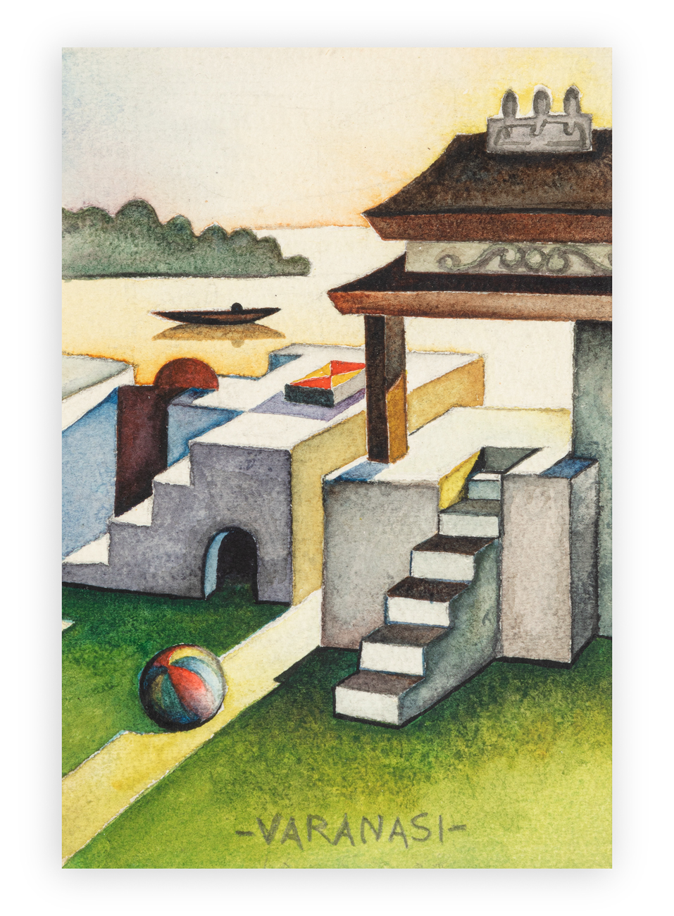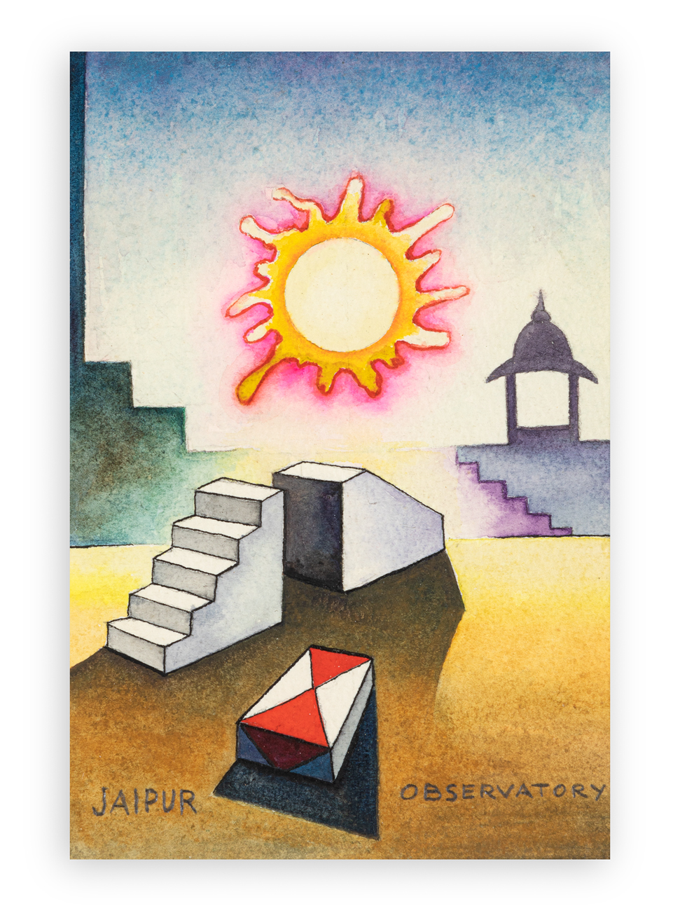 Lotto unico di 4 tecniche miste su carta recanti titoli (Tibet, Varanasi, Tanta e Jaipur Observatory) al fronte e firma dell'Artista al retro