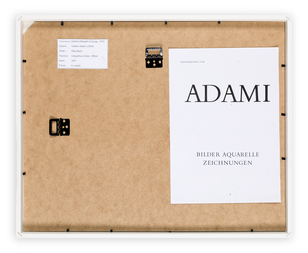 Si allega il catalogo della mostra "Adami - Bilder Acquerelle Zeichnungen" tenutasi presso la Galeire Maeght, Zurigo, nel quale la litografia era originariamente inserita