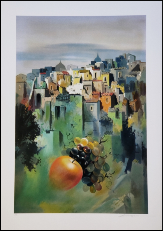 BOSSONE FELICE Avellino 1955 “Senza titolo” serigrafia su cartoncino cm 50x70. Firma e timbro a secco sul fronte in basso a destra, esemplare P.A. a sinistra. Sul retro etichetta di garanzia a cura dell’Istituto Grafico Italiano.