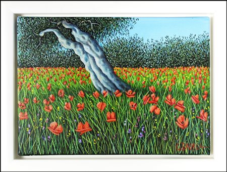 DAUREA GIOVANNI Caltanisetta 1955 “Ulivi siciliani” olio su tela cm 25x35. Firmato sul fronte in basso a destra. Numero d’archivio al retro. Autentica su foto a cura dll’artista.