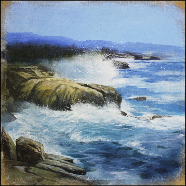 CANCOGNI AGOSTINO Forte dei Marmi 1950 “Scogliera” olio su tela cm 50x50. Firmato sul fronte in basso al centro.