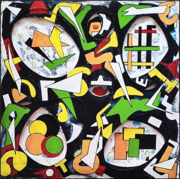 CROTTI DALILA Italia 1983 “May” acrilico su pelle artificiale cm 100x100 del 2004. Sul retro firma, data, tecnica, misure e certificato di archiviazione a cura dell’artista.