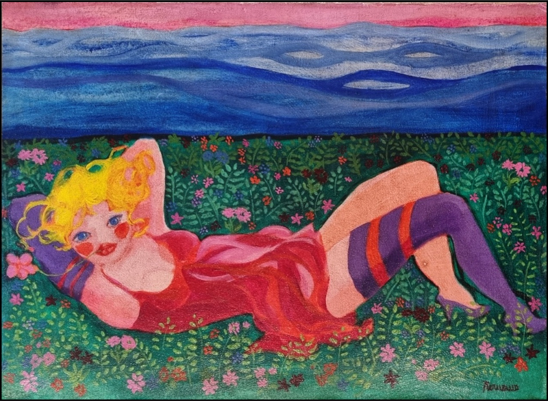 ROMANO DANIELA Roma 1947-2009 “Senza titolo” olio su tela applicata su faesite cm 50x40. Firmato sul fronte in basso a destra e sul retro.