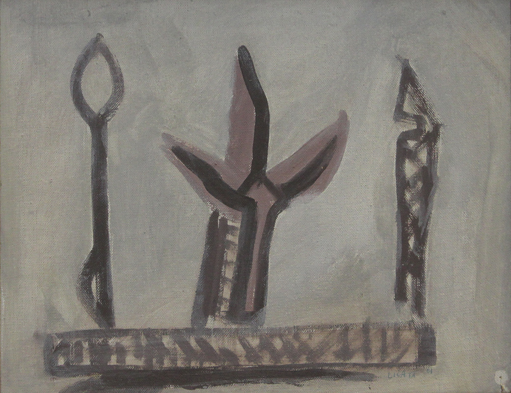 Licata Riccardo Senza titolo, 1961 olio su tela, cm 25x35 firmato e datato in basso a destra, etichette Galleria Ermanno Orler al retro