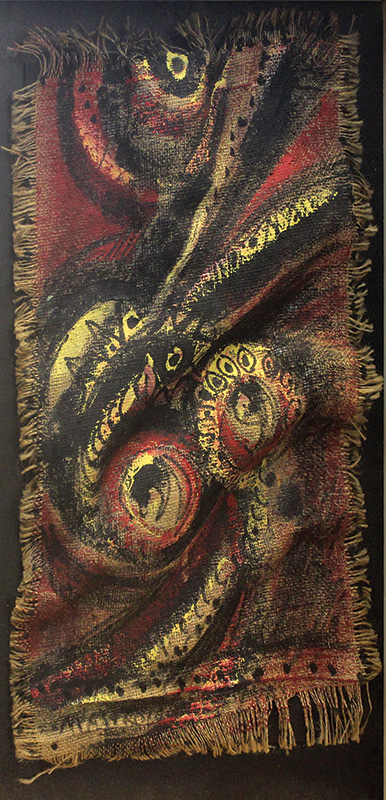 Mastroianni Umberto Composizioni, fine anni '70 olio su tela di juta a rilievo, cm. 53x34 firmato in basso a sinistra, autentica dell'artista su fotografia