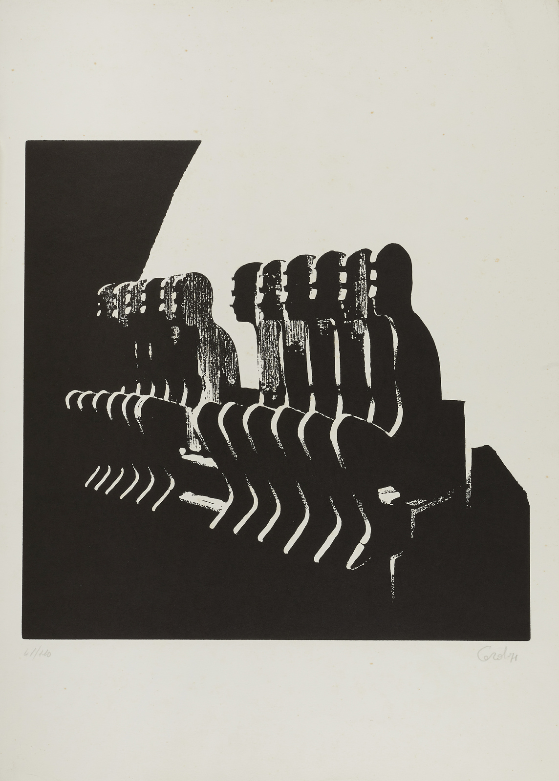 CEROLI MARIO (n. 1938) Senza titolo. Acquaforte. Cm 49,00 x 70,00. 41/110. Tiratura e firma in basso a matita. Timbro a secco Artestudio, Macerata, in basso a sinistra. Dimensione lastra: 43x43 cm.