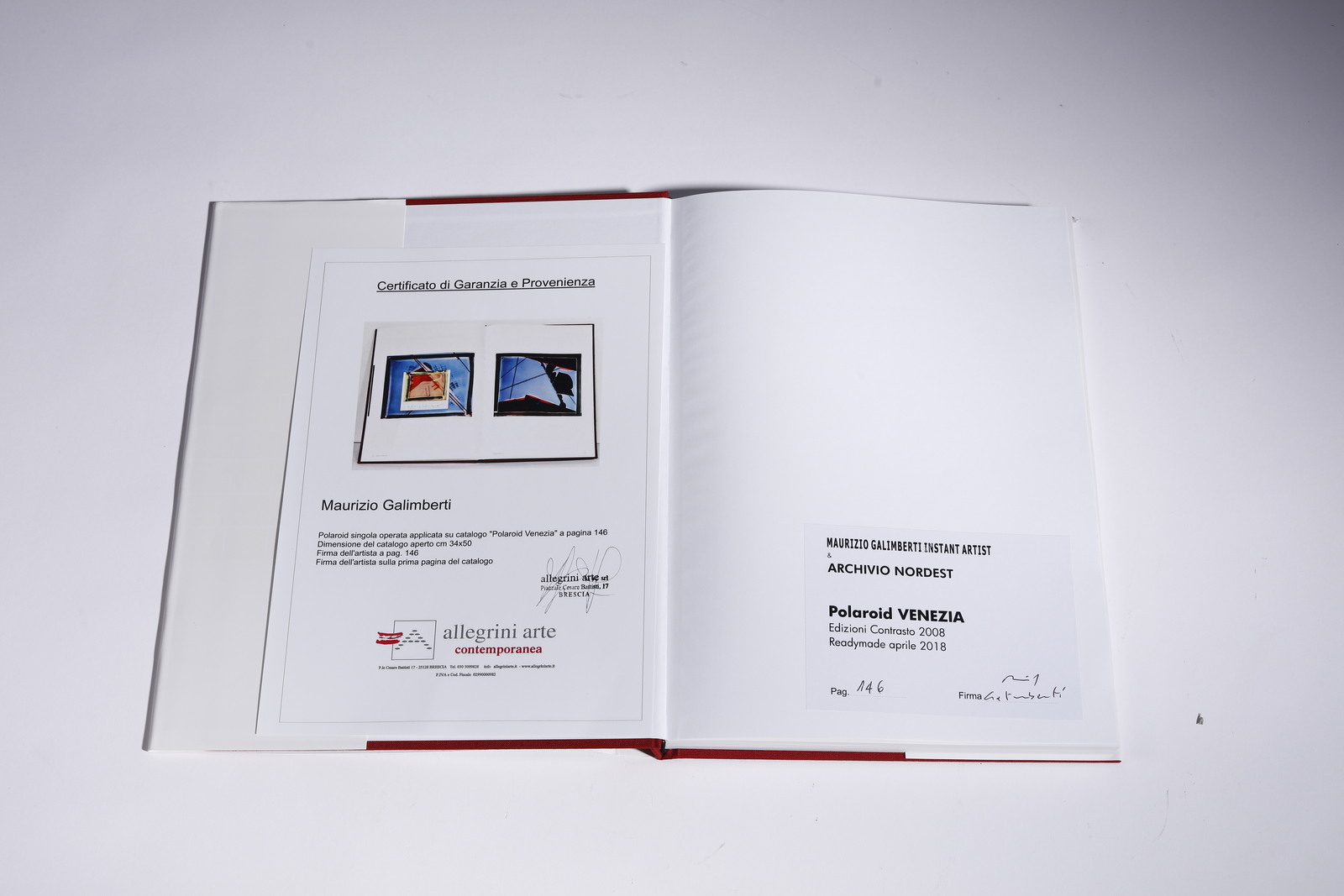 GALIMBERTI MAURIZIO (n. 1956) ReadymadePolaroid Venezia. Polaroid e intervento su catalogo. Cm 25,00 x 34,00. Applicata su catalogo a pag.146. Edizioni contrasto 2008. Certificato di provenienza Allegrini Arte, Brescia. Firma all'interno del volume.