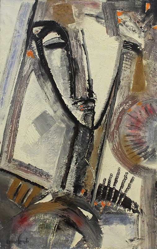 Landi Bruno Figura olio su tela, cm. 80x50 firmato in basso a sinistra, firmato e intitolato al retro, certificato di archiviazione dell'Archivio Fotografico Generale delle Opere di Bruno Landi