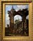 Giovanni Ghisolfi (Milano 1623-Milano 1683) - Capriccio architettonico, 17° secolo cm 130X94 Dipinto ad olio su tela "Figlio dell’architetto piacentino Giuseppe, studiò a Milano pittura presso il lombardo Girolamo Chignoli. Nel 1649 gli fu affidato l’importante incarico di collaborare alla realizzazione degli allestimenti, degli archi trionfali e delle decorazioni pittoriche, per l’accoglienza dell’Arciduchessa Marianna d’Austria, in occasione di una sua visita in città.Nel 1650 è documentata la sua presenza a Roma, impegnato nello studio dell’architettura antica e nella riproduzione grafica di frammenti architettonici, sembra in compagnia dell'amico pittore Antonio Busca. Secondo il racconto del biografo e storico dell’arte Filippo Baldinucci, Ghisolfi a Roma si trattenne a lungo, imparando anche a “dipingere le figure” e a realizzare le prospettive architettoniche, trovandosi a stretto contatto con il più esperto partenopeo Salvator Rosa. Nel 1659 era certamente già rientrato a Milano. Infatti la decorazione ad affresco della terza cappella a destra della certosa di Pavia, eseguita nel 1661 è la sua prima opera documentata in Lombardia, dopo il proficuo soggiorno romano, mentre negli anni successivi sarà attivo anche nel Veneto.Sugli ultimi anni di vita, l’Orlandi ci racconta del suo decadimento fisico e della cecità che lo colpì sul finire. Morì a Milano nel 1683 e fu sepolto nella chiesa di S. Giovanni in Conca. L’opera in esame riproduce uno scorcio di rovine classiche, riconducibili alla sua formativa esperienza romana, ed esprime un saldo impianto architettonico: le figure, dai pochi gesti misurati, sono vestite di drappeggi, berretti e calzari, particolari di abbigliamento che sembrano tratti anche dal repertorio di Salvator Rosa, mentre la scena si presenta di severa compostezza.Infatti il classicismo che emerge dai suoi dipinti, reso attraverso composizioni lineari, colori chiari, luce diffusa e la solida impostazione architettonica, rendono Giovanni Ghisolfi anticipatore del vedutismo settecentesco e battistrada di nuove tendenze espressive. Alcuni tra i paesaggi, le vedute e le prospettive realizzate in questo periodo costituiranno un fondamentale modello di ispirazione per il più celebrato emiliano Giovanni Paolo Pannini." STUDIO ASOR