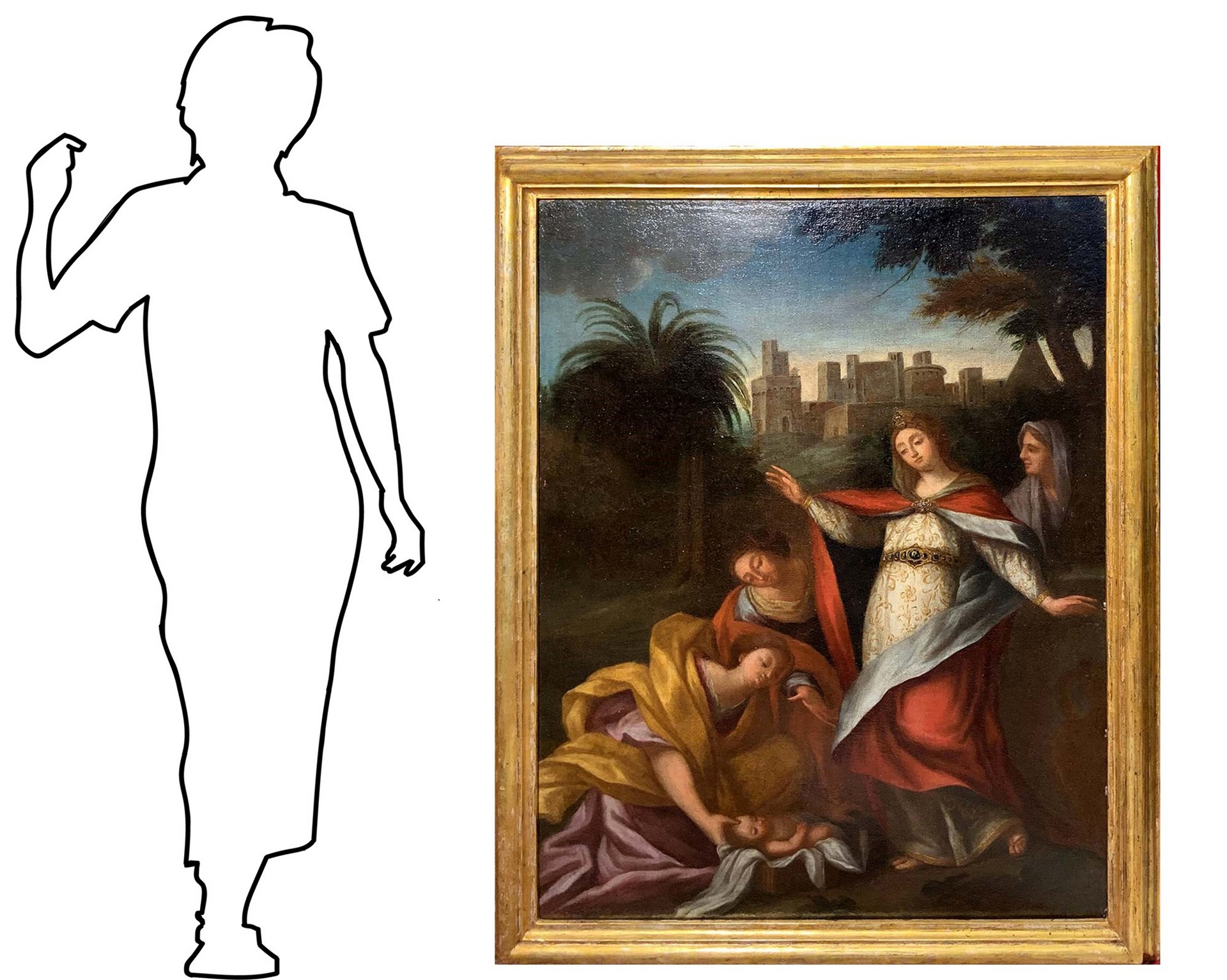 Ritrovamento di Mosè, XVII secolo cm 140 x cm 113 Olio su tela Pittore francese del XVII secolo.