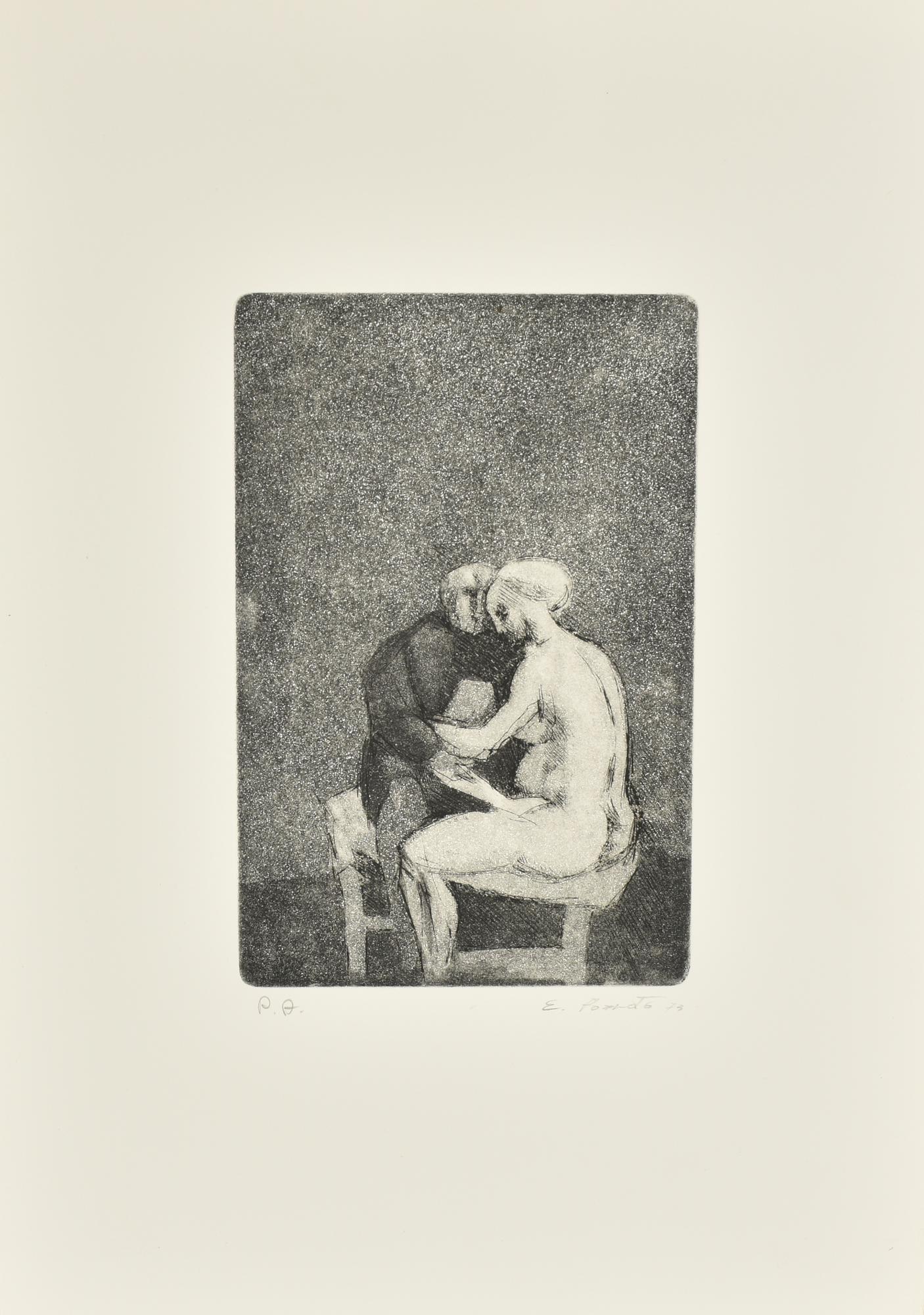 Epifanio Pozzato CONFESSIONE acquaforte/acquatinta su carta, battuta cm...
