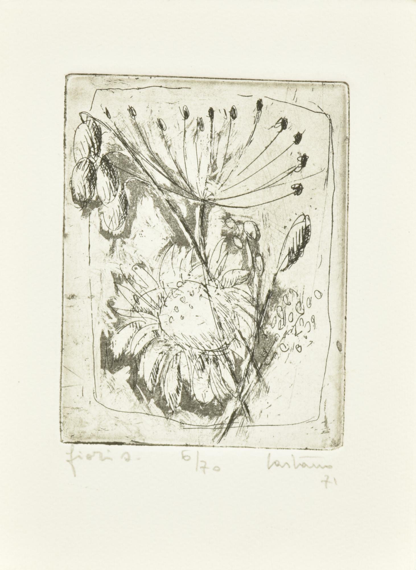 Aldo Castano FIORI incisione su carta, battuta cm 11x8,5, su foglio cm...