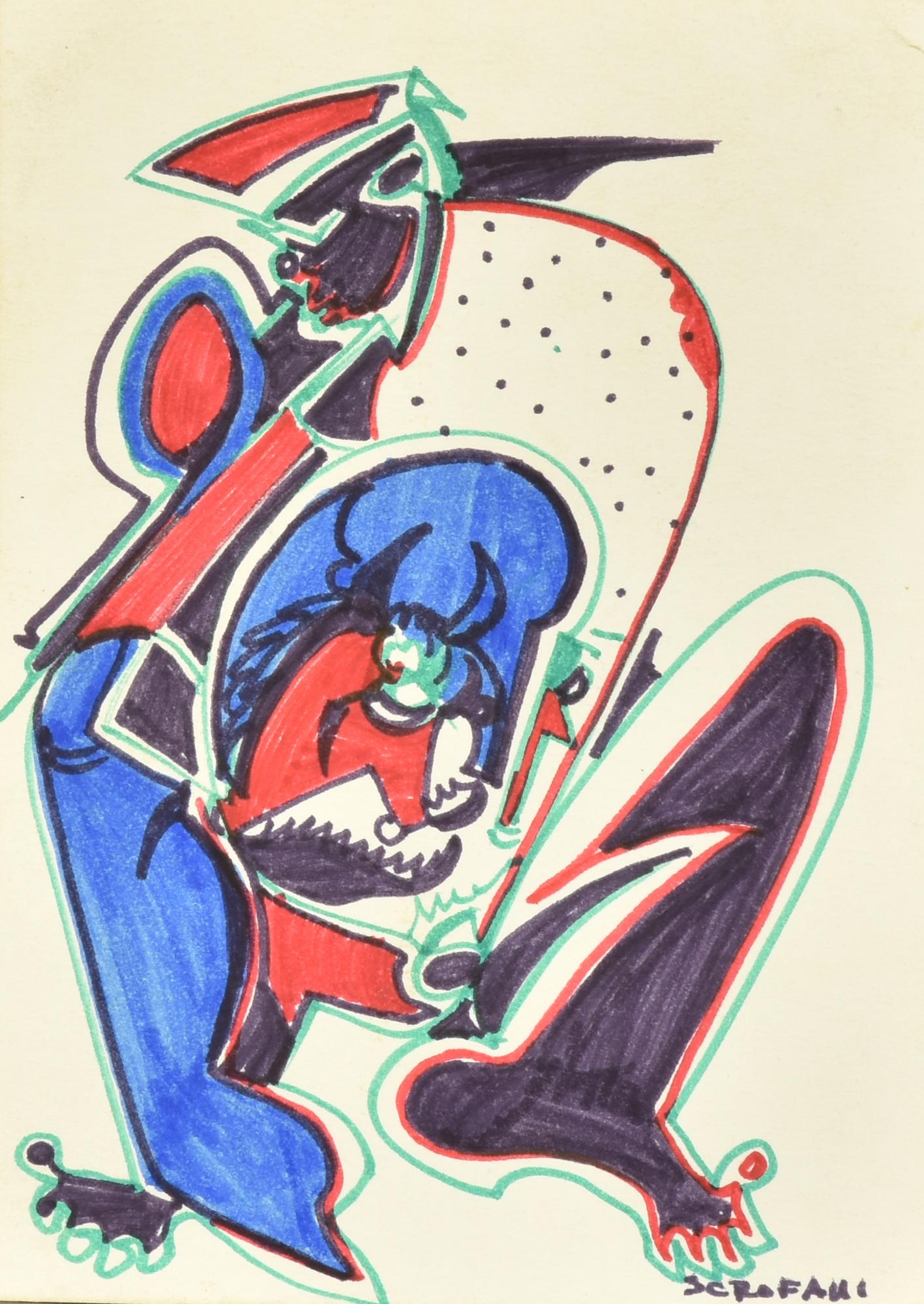 Agostino Scrofani FIGURA DEMONIACA pennarello su carta, cm 14x10 firma sul...