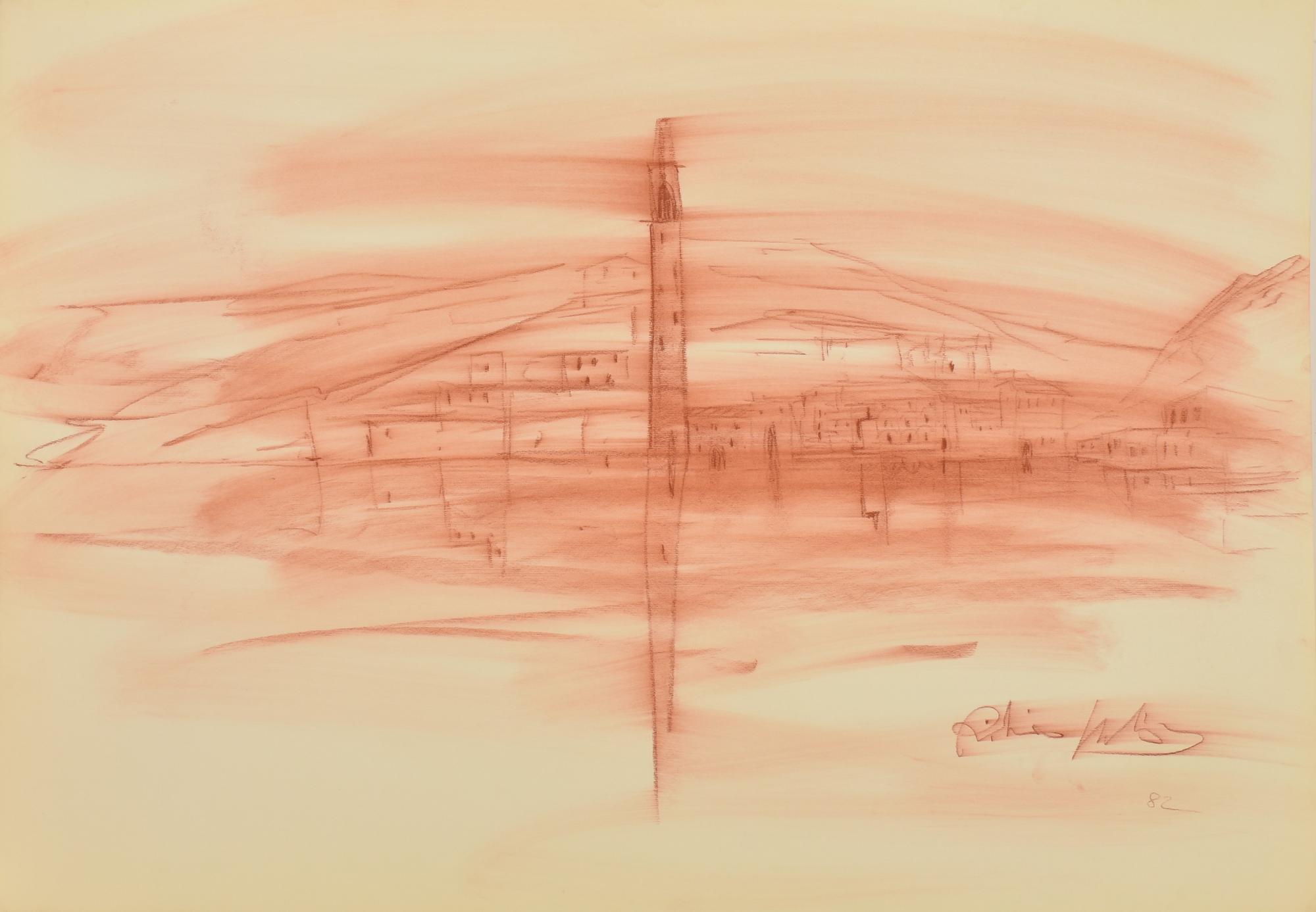 Ignoto PAESAGGIO sanguigna su carta, cm 70x100 firma e data eseguita nel 1982...