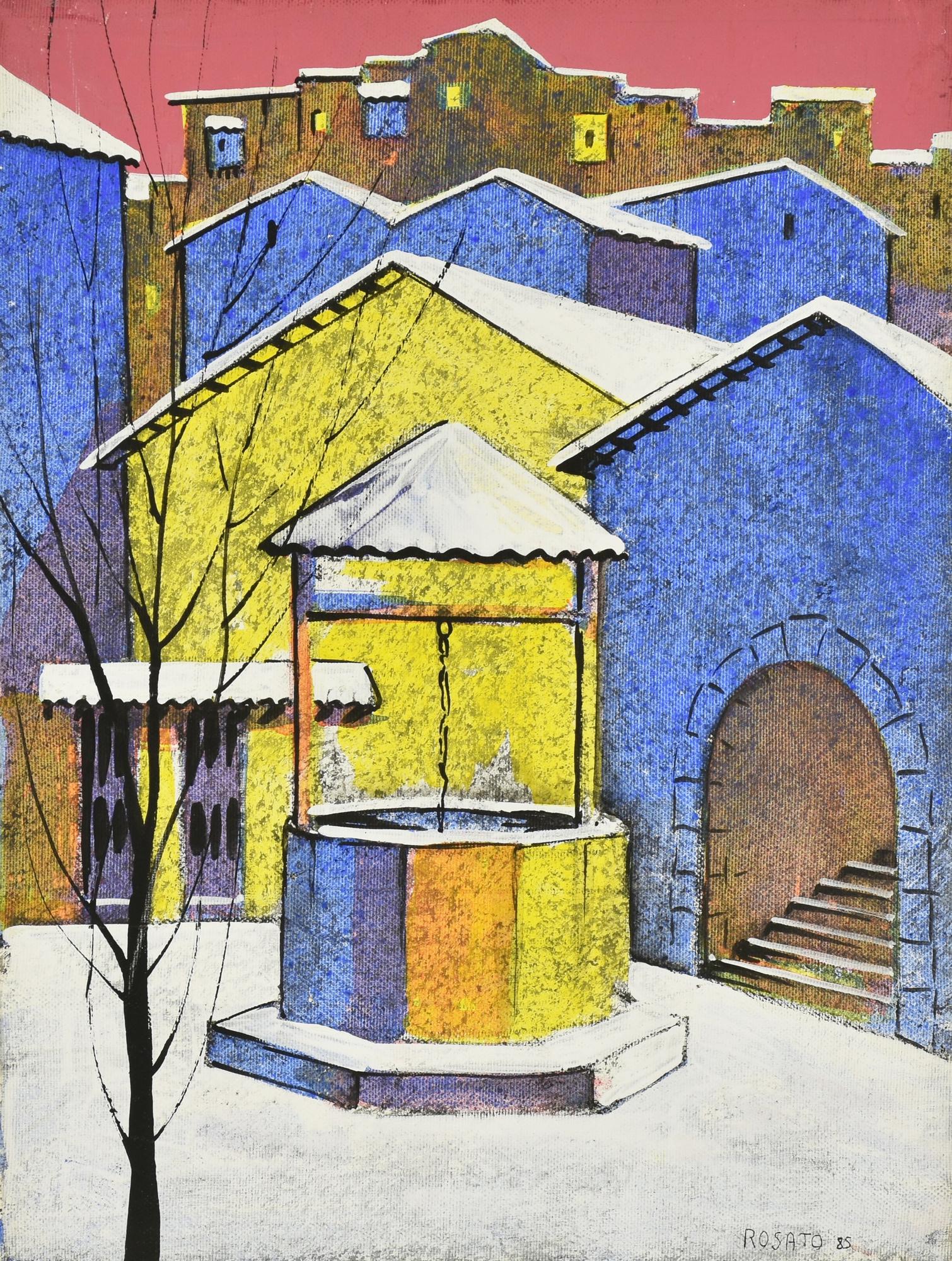 Rosato SCORCIO DI PAESE olio su tela, cm 40x30 firma e data sul retro: firma...