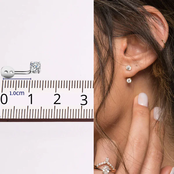 Le classiche borchie di diamanti (2=0,36) sono attaccate a un copriorecchie di diamanti incastonato con diamanti da 0,36 carati, che danno l'aspetto di un diamante che fluttua sotto il lobo dell'orecchio. Mozzafiato! I comodi perni a vite mantengono gli orecchini al sicuro. Indossa queste classiche borchie di diamanti durante il giorno e migliora il tuo stile con le giacche per le orecchie di notte. In coppia. Disponibile anche in oro giallo. - CP5052W
