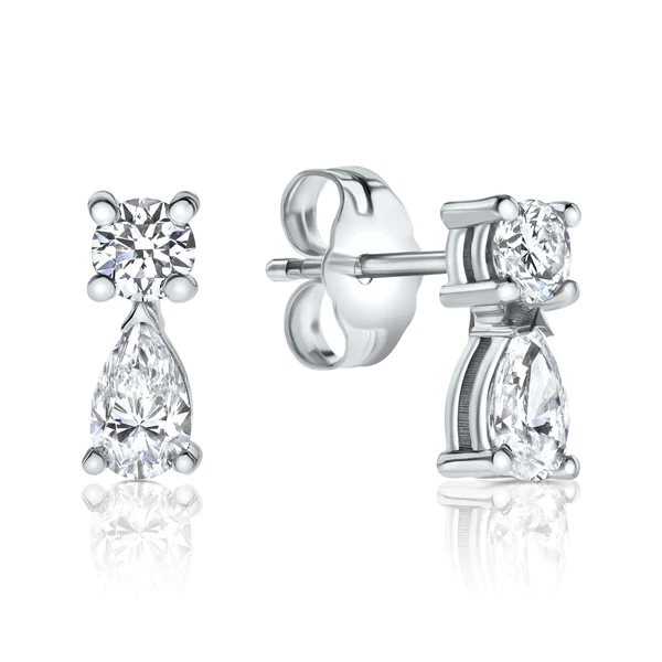 Un affascinante paio di orecchini a bottone con diamanti della nostra collezione Fantasy, questi orecchini saranno i tuoi orecchini preferiti. Realizzato a mano in oro bianco 14 carati e griffe incastonate con un diamante rotondo e un diamante a forma di pera incastonati sotto di esso. I comodi montanti push back mantengono gli orecchini al sicuro. Lussuosi e unici nel design, questi orecchini eleveranno qualsiasi outfit. In coppia - CP507W
