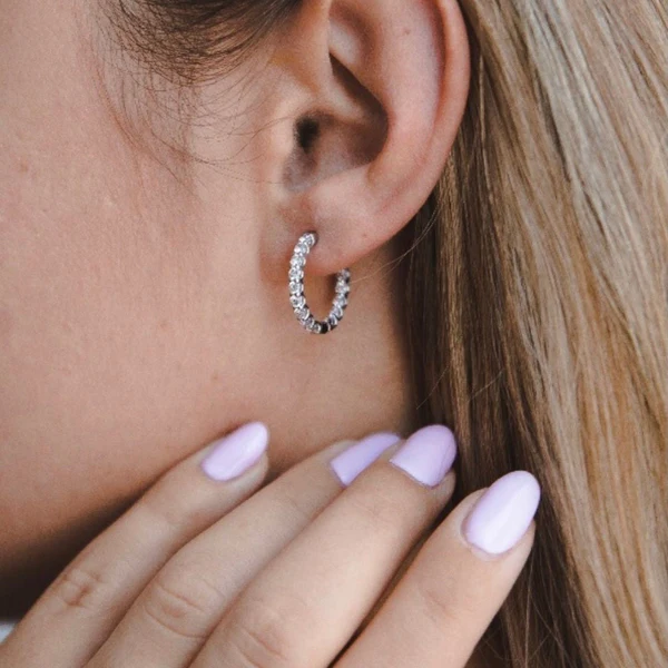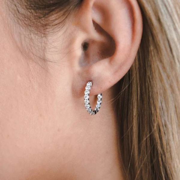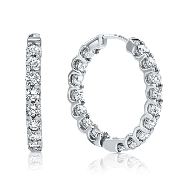 Gli orecchini a cerchio Kayla sono progettati per rubare la scena! Realizzato a mano in oro bianco 14 carati con pavé di diamanti autentici incastonati, per un totale di 1,2 carati, lungo l'interno e l'esterno dei cerchi. Questi orecchini sono mozzafiato da ogni angolazione! In coppia. - CP5128W