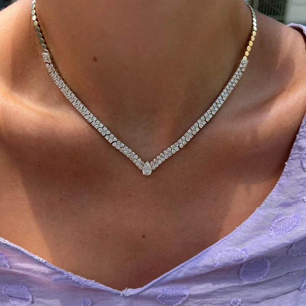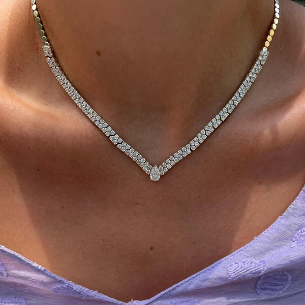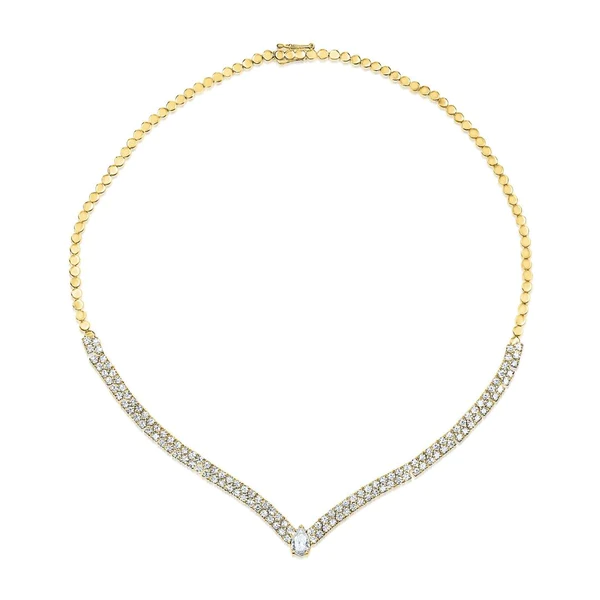 Ti innamorerai all'istante della bellezza senza tempo di questa collana collier di diamanti unica nel suo genere. Progettata in oro giallo 14 carati, la stella di questa collana è un vero diamante taglio a pera da 1,05 carati tenuto da tre griffe. Il diamante centrale è circondato da una doppia fila di 128 scintillanti diamanti rotondi per un totale di 7,00 carati. Una collana classica della nostra collezione Lor che sfoggia magnificamente lo stile distintivo di Rogel, questa collana è perfetta per quando vuoi un pezzo con molta presenza ed eleganza. - CP5511