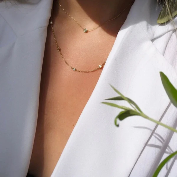 La collezione CHABLIS, nel design di questa collana di diamanti, abbiamo sognato una collana che non fosse un ciondolo pendente. I diamanti sono incastonati intorno al collo a diverse distanze. Collana straordinaria e speciale - CP7976Y