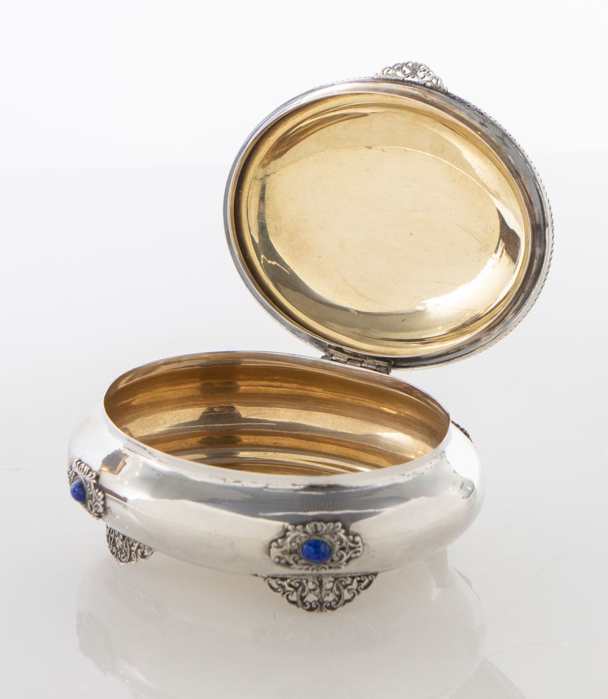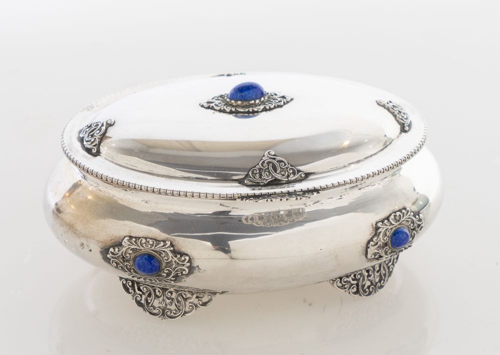 TADIELLO GAETANO, Milano, XX secolo. Scatola in argento 800 con pietre dure....