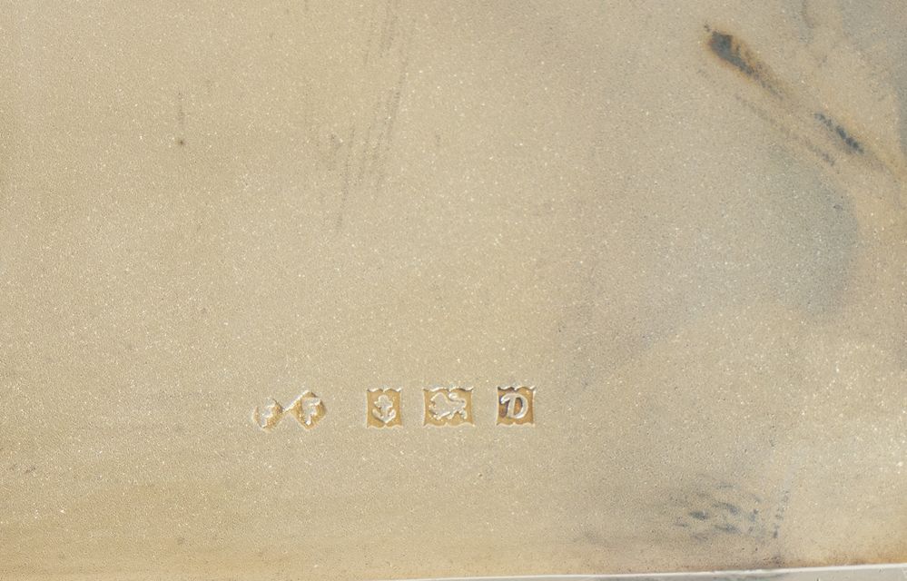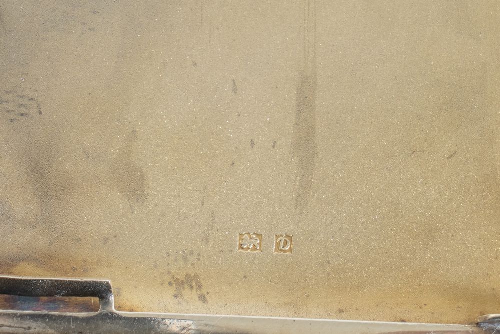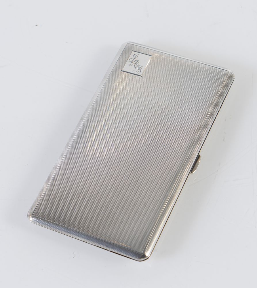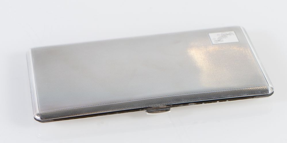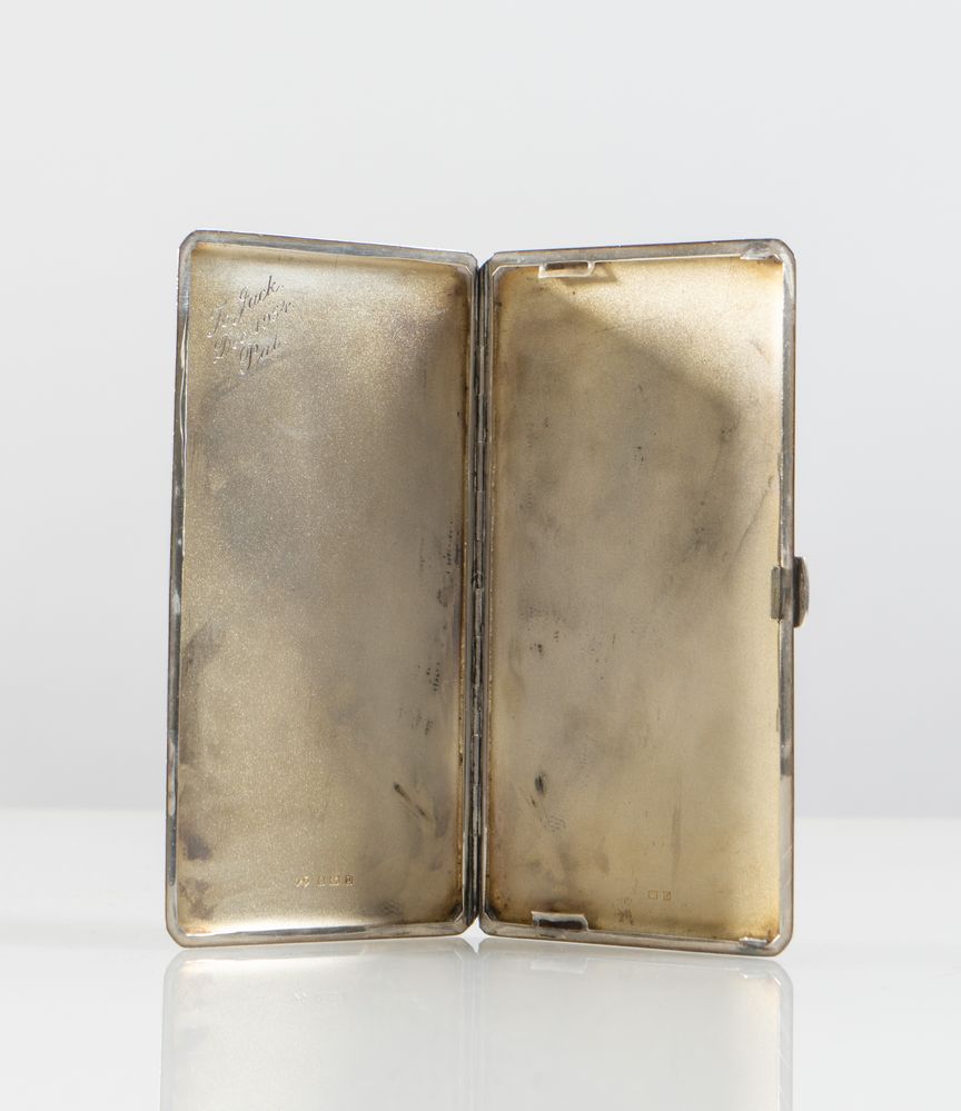 Frederick Field Ltd, Birmingham, metà del XX secolo. Portasigarette in argento 925. All'interno reca punzoni: stemma dell'argentiere, ancora, leone passant, lettera dataria D. Cm 16x9x1. Peso: 240 gr.