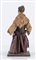 "Anziana con brocca". Figura di presepe. Scultura in terracotta con abiti in stoffa inamidata. Anni 30/40 del XX secolo. Cm 29,5x15x10.
