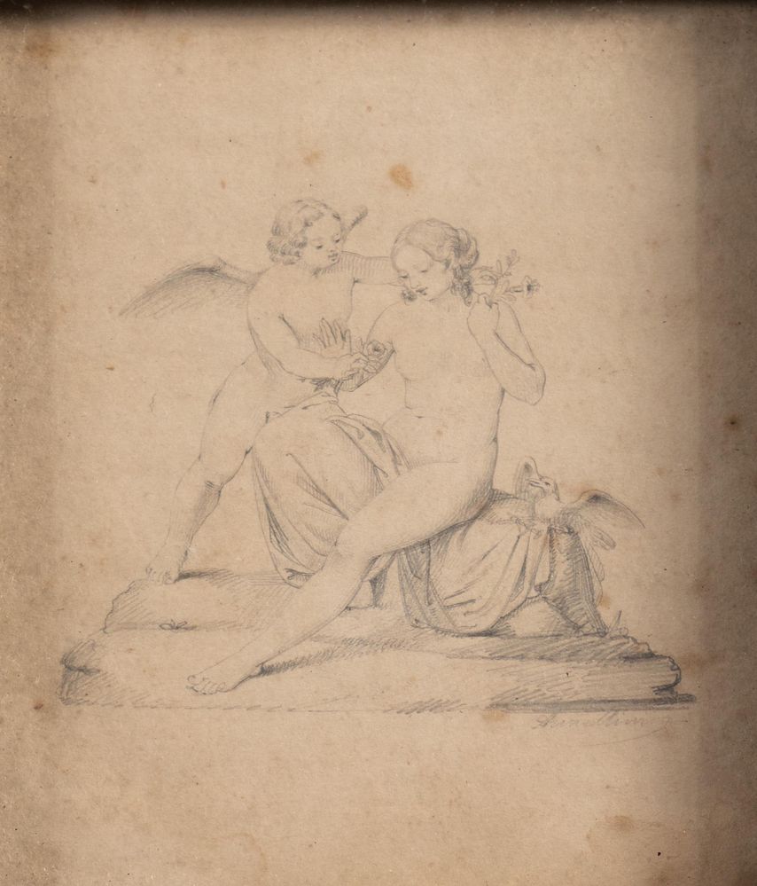 ARMELLINI (XIX secolo) "Fanciulla con putto". Disegno a matita su carta. Cm...