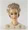 CACCIAPUOTI "Ritratto di giovane donna". Scultura in ceramica policroma e dorata raffigurante una giovane donna con elaborata decorazione floreale sul capo. Cm 36,5x31,5x19. Sul retro, incusse, reca firme Elcod G. Y. e Cacciapuoti e iscrizione Made in Italy. Alla base reca etichetta cartacea della Manifattura Cacciapuoti, Ceramiche e Grès d'Arte. (lievi difetti)