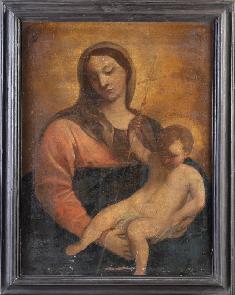 Lotto 149 | Maestro del XVII secolo. "Madonna con bambino". Olio su tela. 94,6x72....
