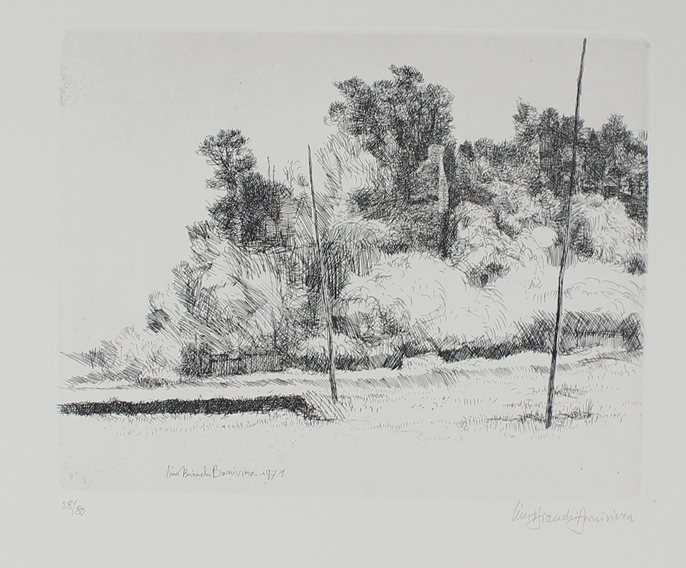 Bianchi Barriviera Lino Sulla Flaminia vecchia, 1971 acquaforte su carta, cm....