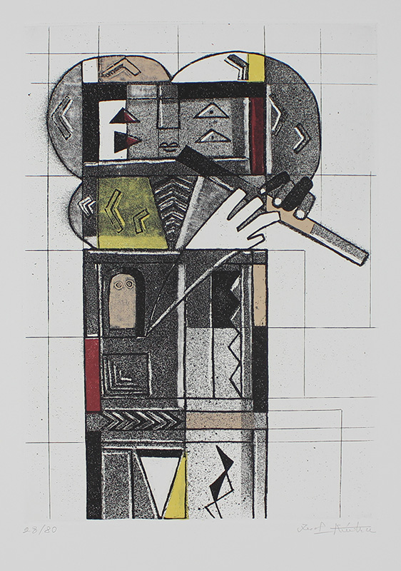 Kodra Ibrahim Pifferaio, 1972 acquaforte - acquatinta a colori su carta, cm. 70x50, es. 28/80 firmata in basso a destra, certificato di autenticità della Graphis Arte - Livorno
