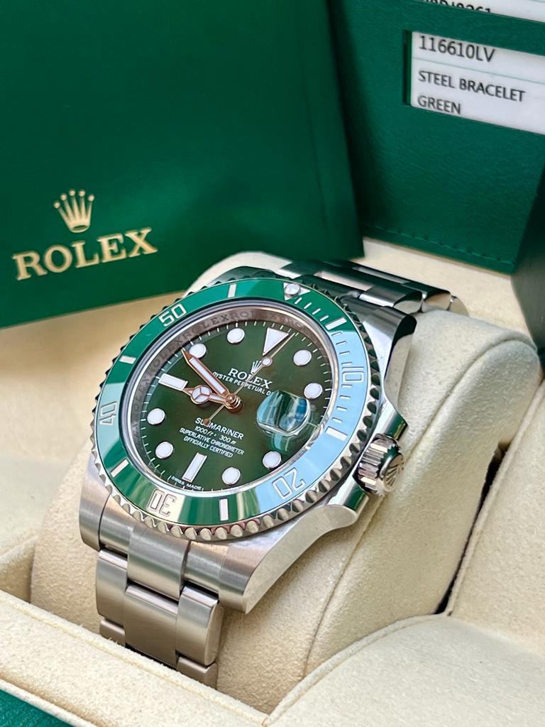 Marca Rolex Modello submariner Hulk Ref 116610LV Condizione eccellente Anno 2014, Vetro zaffiro Garanzia Rolex , Bracciale oyster, Scatola di fornitura