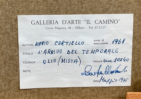 Mario Cortiello "L'arrivo del temporale" 1968 tecnica mista su tela cm 30x40 fir
