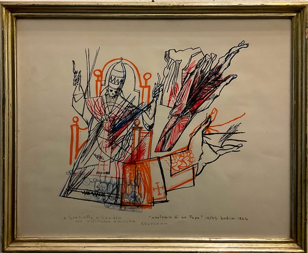 Floriano Bodini "Anatomia di un Papa" 1964 litografia a colori cm 49x60,5 titola