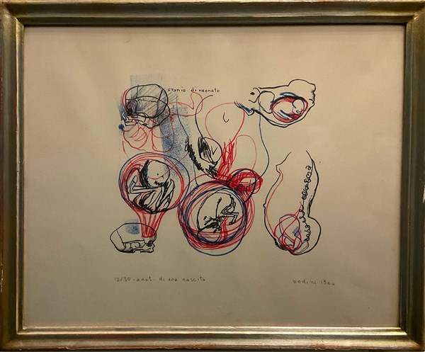 Floriano Bodini "Anatomia di una nascita" 1964 litografia a colori cm 40x50 tito