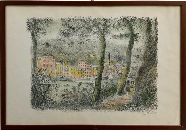 Michele Cascella "Portofino" litografia a colori cm 49x69 firmata e numerata 58