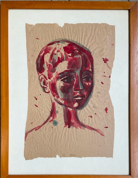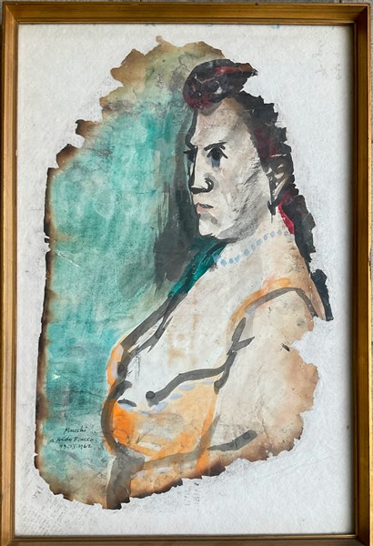 lotto composto da una tecnica mista su carta bruciata raffigurante profilo femminile, firmato, datato 1962 e dedicato (circa cm 45x27) e un acquerello non firmato raffigurante volto di ragazzo (circa cm 34x22)