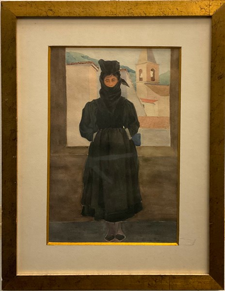 Firma indecifrata "Figura femminile" acquarello su carta cm 32x21 firmato in ba