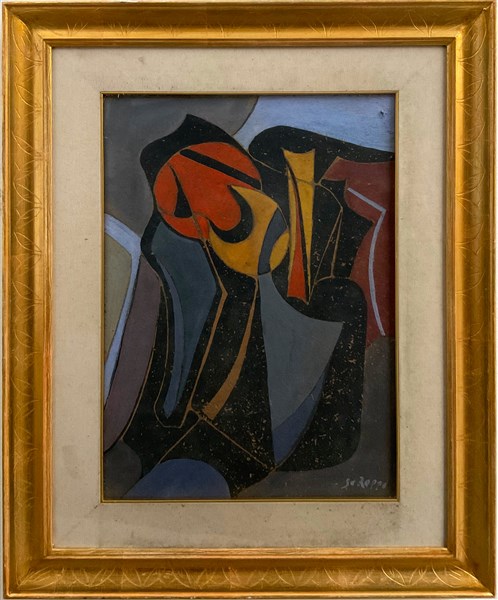 firmato in basso a destra; firmato al retro. In cornice (difetti)